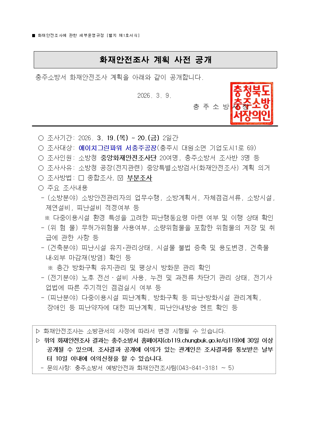 | 다음글 | 화재안전조사 계획 사전 공개(2026년 4월 정기 화재안전조사) |
