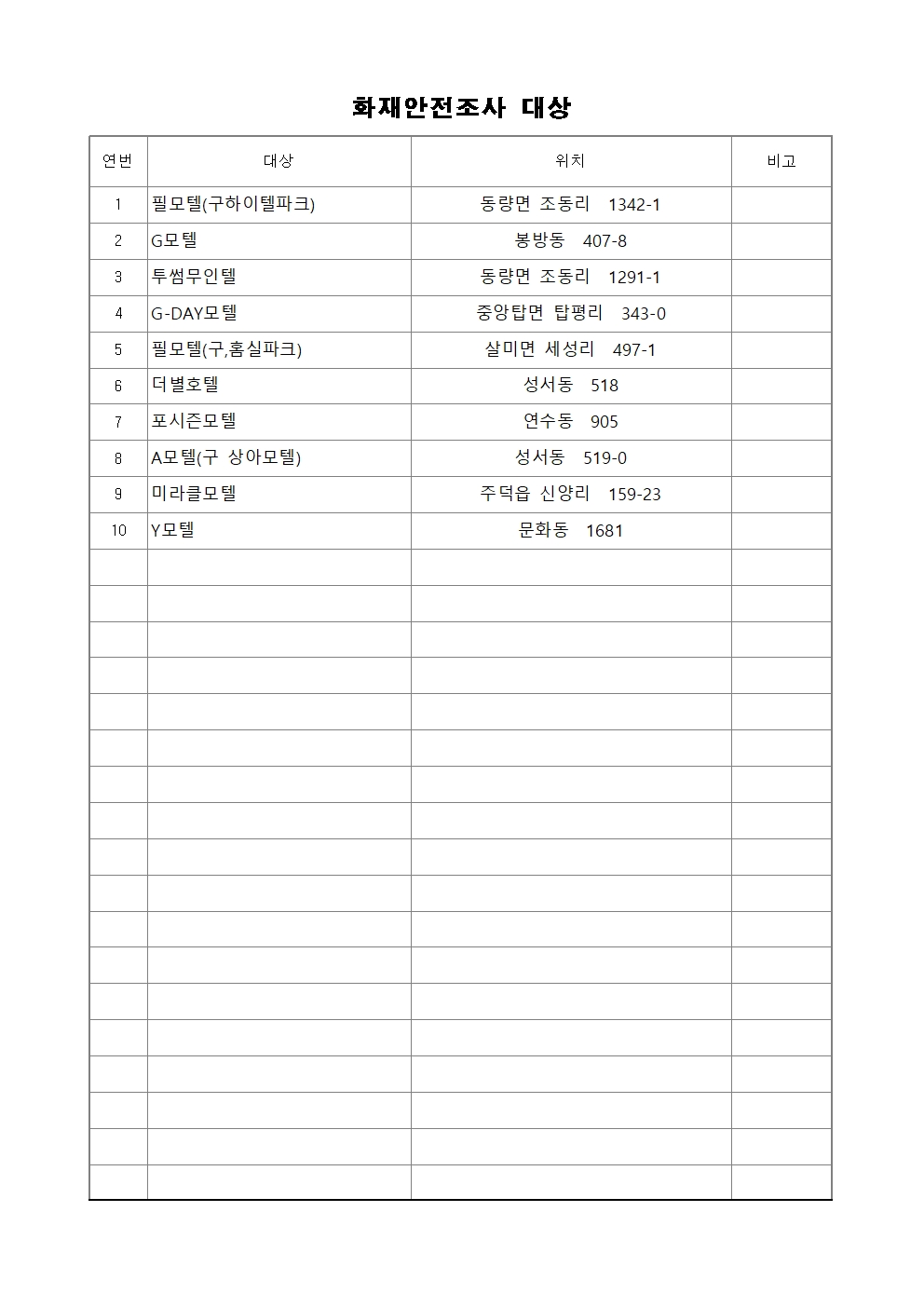 | 화재안전조사 계획 사전 공개(숙박시설 긴급 화재안전대책) | |||||